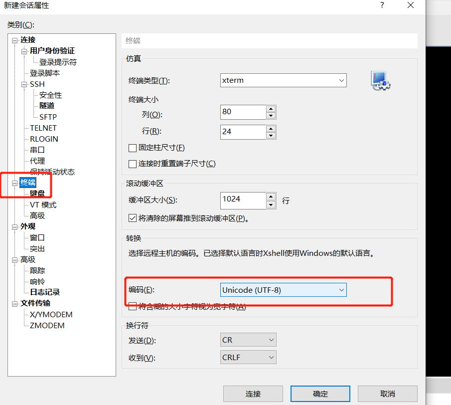 xshell终端中文显示乱码