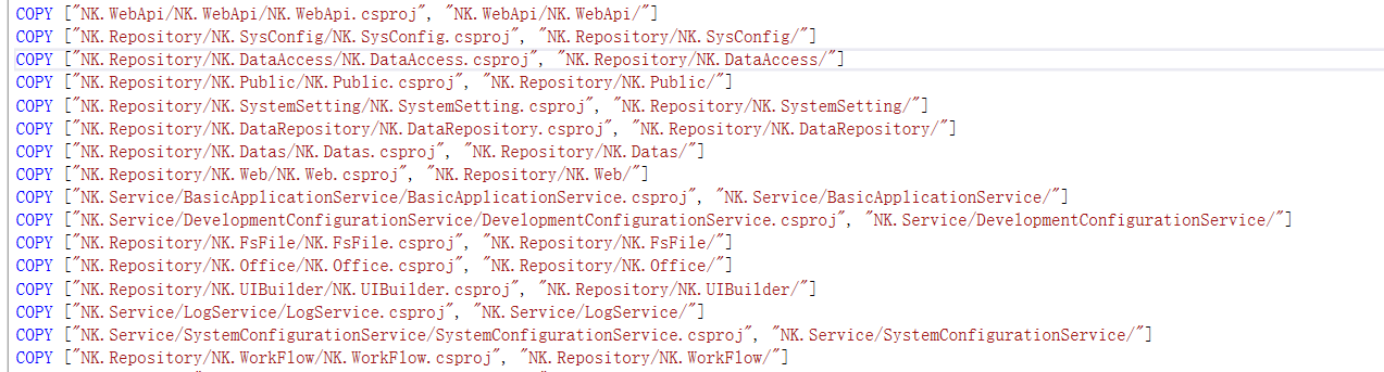 建议将Dockerfile 复制到 sln 文件同级目录,这样不用更改dockerfile 就可以直接将项目打包至镜像