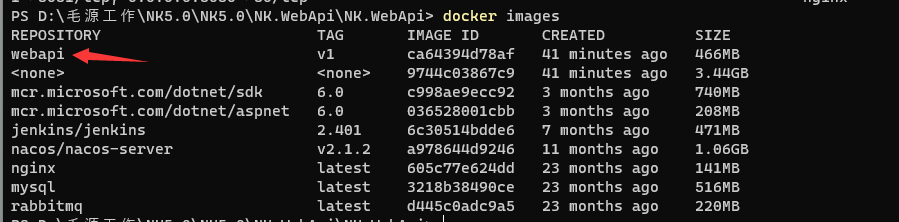 Build 阶段中会将所有的项目根据scproj 文件将项目进行打包,所以在生成镜像时要选择正确的路径执行Docker build 命令